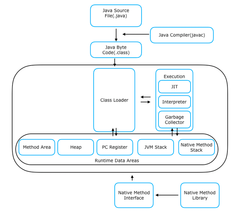 Java는 .java 파일을 javac 컴파일러를 통해 .class 바이트코드로 컴파일한 후, 클래스 로더에 의해 .class 파일을 JVM 위의 Runtime Data Area에 올려서 실행시키기에 OS 독립적으로 개발할 수 있다.