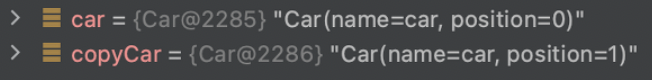 copyCar의 position을 변경하였는데 car의 position 역시 변경된 것을 확인할 수 있다.